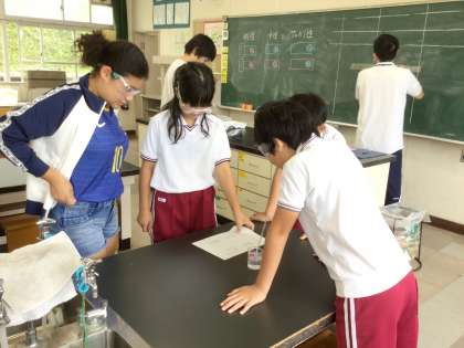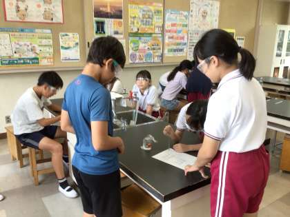 リトマス試験紙を使って、水溶液を調べました。 保護メガネを着用して、安全に気をつけておこないました。