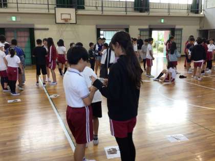 来週の修学旅行のために、5年生がお守りを作って6年生に渡しました。