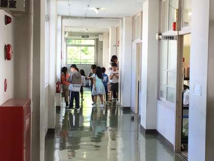 廊下に出て、輪ゴムを飛ばします。