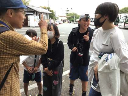清水寺の駐車場で、ガイドさんと合流し、今から班別行動に出かけます。
