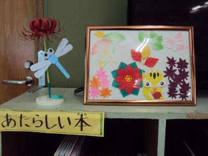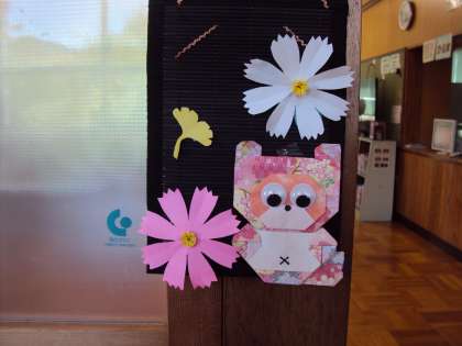 折り紙講師から飾りものをいただきました。タイム図書室に飾ってあります。