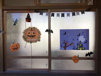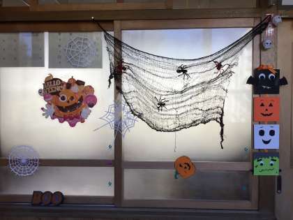 もうすぐハロウィーンです。 ワールド図書室の前を通ったら、ステキな飾り付けがしてありました。