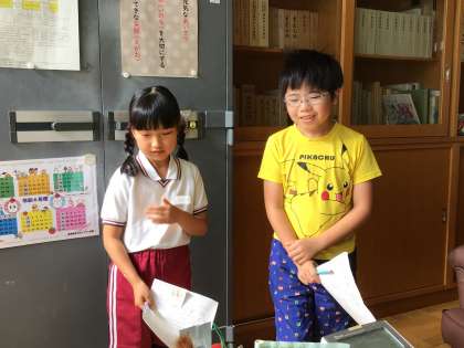 10月22日 きらきらマーケット 8くみ 公開日 2024/10/22 更新日 2024/10/22 校長室から 「校長先生は、大葉は好きですか? 1袋10枚入りです。いくついりますか?」 上手に注文を取ることができました。