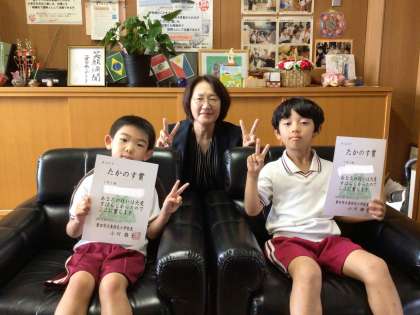 10月23日 たかのす賞 1年生 公開日 2024/10/23 更新日 2024/10/23 校長室から 昨日の給食のおかわりで、1つを半分にしたものをお互いに譲り合ったと担任の先生から聞きました。 友達を思いやる とても素敵な2人です。