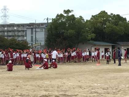 大玉送りの後、応援合戦の練習をしました。