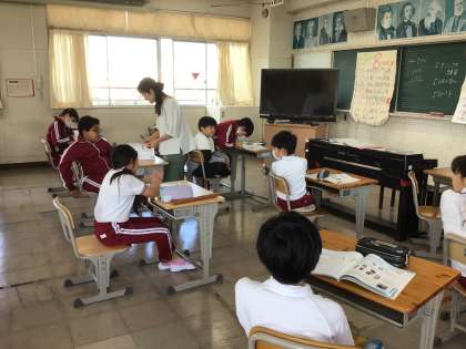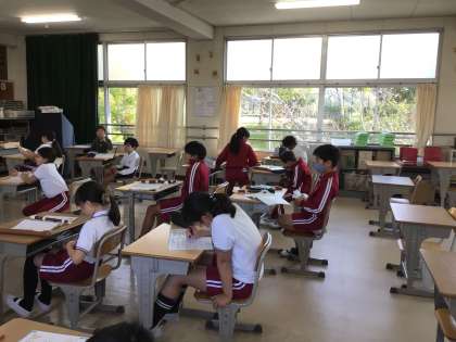 11月6日 音楽 4年生 公開日 2024/11/06 更新日 2024/11/06 校長室から 「オーラリー」の階名を書き込んでいるところでした。 「あれ?もうできちゃった?」 できたら、ミニ先生としてサポートに行きます。
