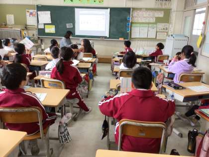 国際学級も1組も九九の練習をしました。 5の段、2の段はまかせて!