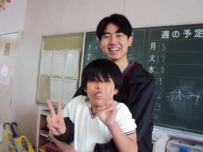 本日も中京大学生さんに来てもらいました。授業の支援やボールの空気入れ、昇降口の砂取りなど、さまざまなボランティアをしていただきました。ありがとうございます。
