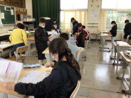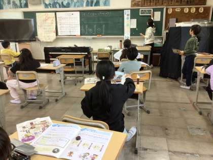 黒板には「サミングの指遣いのまとめをしよう」と書かれていました。