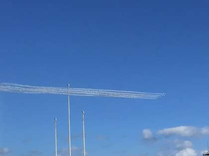 午後2時ごろ、ブルーインパルス航空ショーが始まるということで、学校中そわそわ。