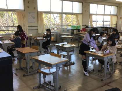 11月25日 音楽 3年生 公開日 2024/11/25 更新日 2024/11/25 校長室から 「パフ」 リコーダーの練習をしました。 隣の子の指遣いを見て、正しくできているのか確認しました。 見る方だけど、自分もリコーダーを持ち指遣いが一緒かどうか確認します。 「大丈夫👌」 「できています」 そんな言葉が飛び交っていました。