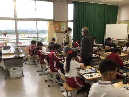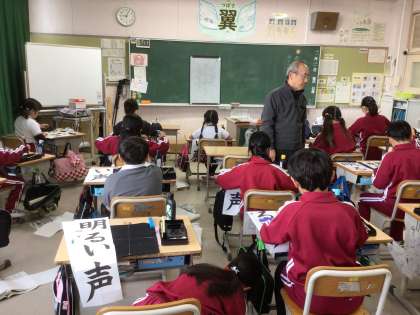 今日は書写ボランティアの先生が来てくださいました。 書き初めの指導をしてくださいました。