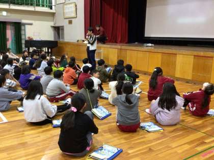 11月27日 社会科 5年生 公開日 2024/11/27 更新日 2024/11/27 校長室から トヨタ自動車 オンライン授業 体育館に集まって、授業をしました。 トヨタ自動車の方がオンラインで授業をしてくださいました。