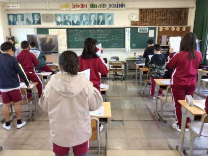 冬景色 元気のよい5年生。 でも、今日は静かに歌っていました。 歌詞が難しいのかな?