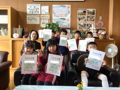 12月4日 たかのす賞 1年生 公開日 2024/12/04 更新日 2024/12/04 校長室から 朝一番に1年生がたかのす賞を受け取りに来ました。 図工の後、床に落ちたごみをきれいに片付けてくれた子、 名前ペンを忘れた友達を見つけて、教えてくれた子、 名前ペンを貸してくれた子(この連携プレーが素敵です) 素晴らしい行動にたかのす賞をおくります。