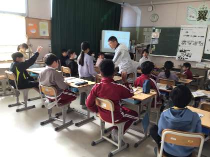 12月4日 外国語活動 4年生 公開日 2024/12/04 更新日 2024/12/04 校長室から Where is the music room? Music room, Libraryなど教室の名前を覚えました。