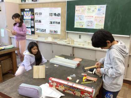 12月6日 図工 4年生 公開日 2024/12/06 更新日 2024/12/06 校長室から のこぎりギコギコ 材料をのこぎりを使って切り、作品を作ります。 「写真立てができたよ」 と、見せてくれました。