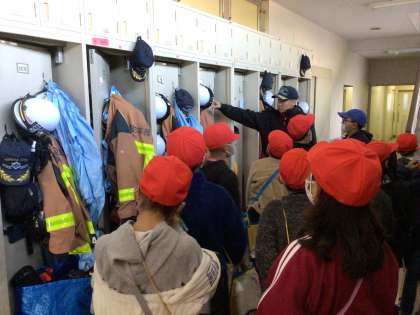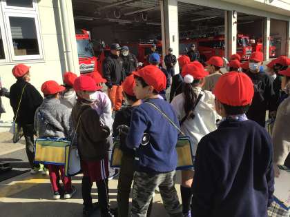 12月12日 校外学習 3年生 その4 公開日 2024/12/12 更新日 2024/12/12 校長室から 消防署に到着し、建物の中を案内してもらいました。 食堂の隣の台所で、大きなフライパンを見せてもらいました。 こども「どろぼうが来たら、それでやっつけるの?」 署員さん「そういう使い方もできるね」