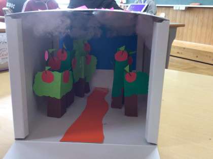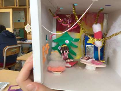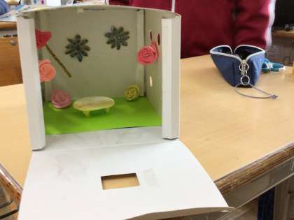 のぞいてみると 箱の中に思い思いの世界が完成しました。