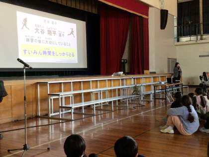 休みの日も同じ時刻に起きることなど、これから冬休みに入る子どもたちにとって大切なお話でした。