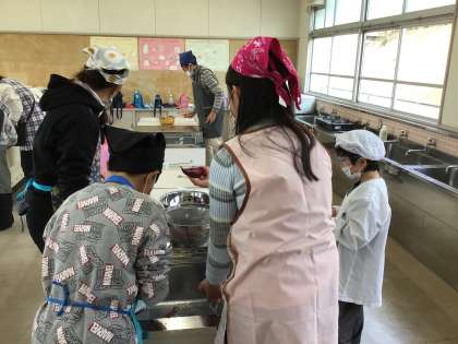 収穫したさつまいもととうもろこしを使って、調理実習です。