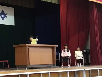 1年生と5年生、6年生の児童による意見発表があり、今年頑張ったことや苦手だったけれど克服したこと、友達と協力したことが語られました。