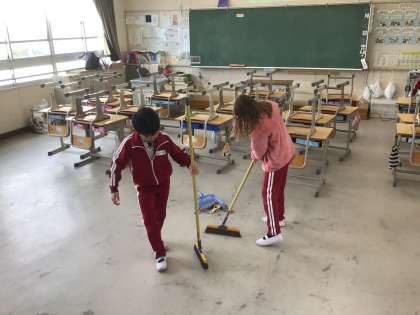 掃除中に回っていると・・・ どの子も掃除をがんばっていました。
