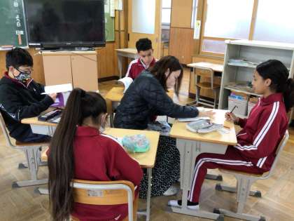 先生を囲んで、算数の学習が始まりました。 今から復習です。