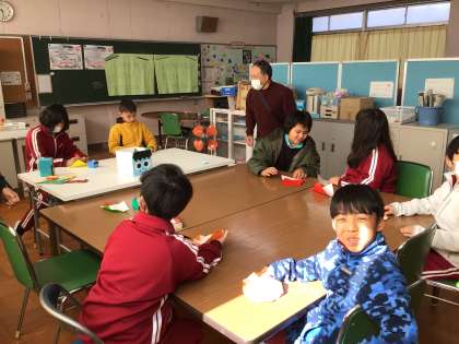 2月の節分に向けて、折り紙で箱を作りました。 次回は鬼の顔を描きます。