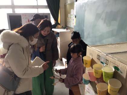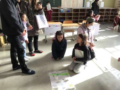 発表の後、子どもたちが作ったおもちゃを紹介し、お家の人にも遊んでもらいました。