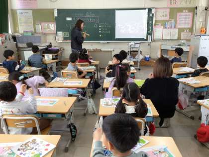 1月22日 音楽 1年生 公開日 2025/01/22 更新日 2025/01/22 校長室から 耳をすましてがっきの音をきこう シンコペーテッドクロックの鑑賞です。 時計の音をウッドブロックを使って、先生が表現しています。