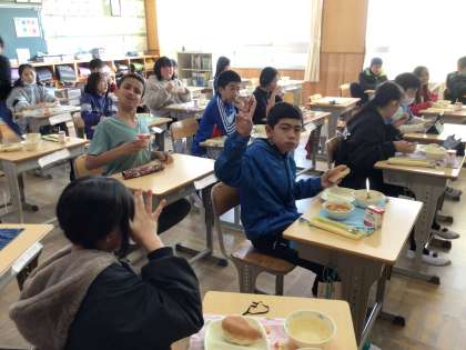 もう食べ終わった子もいます。 給食の時間は、授業中に比べると、少しだけ楽しそうです。