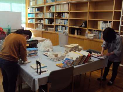 本日も図書ボランティアさんに、廃棄図書の処理をおこなっていただきました。