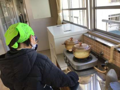 今日は調理実習です。 ご飯を炊いて味噌汁を作ります。 上手にできるといいね。