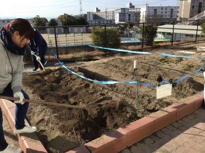 今日は5年生がジャガイモの種芋を植えます。