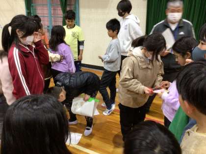 たてわり班の6年生にプレゼントを渡しました。