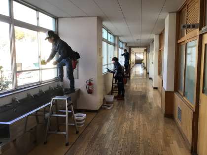 朝から業者さんに、窓ガラス清掃をしてもらっています。 高いところもきれいにしてもらいました。