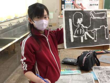 彫っている子もいますが、印刷に取り組んでいる子もいます。