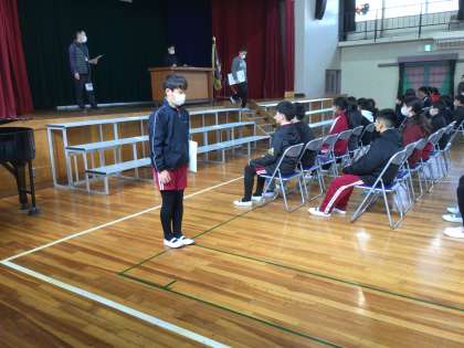 体育館で卒業証書授与の練習をしました。