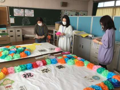 今日も朝から卒業式のフォトスポットづくりのために来てくださいました。