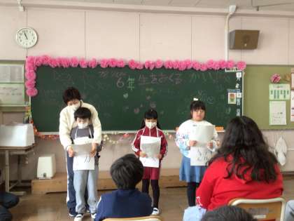 3月13日 お別れ会 7・8・9くみ 公開日 2025/03/13 更新日 2025/03/13 校長室から 今日は卒業してしまう6年生とのお別れ会です。 歌あり、クイズあり、ゲームありのとても楽しい会になりました。