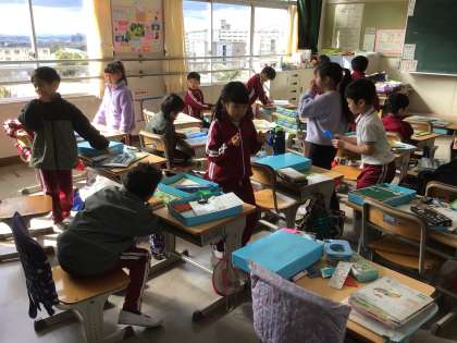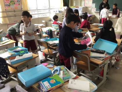 机の中のものを全て出して、お道具箱の中を整とんしました。 いろいろ出てきます・・・。
