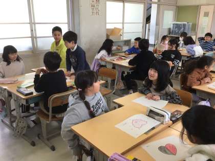 3月17日 ピア・サポート・トレーニング 2年生 公開日 2025/03/17 更新日 2025/03/17 校長室から 今日は担任の先生が午後から不在だったので、授業をさせてもらいました。 「わたしのハート」 今日のめあては「友達の話を聞く」です。 2年生の思い出をハートに色で表しました。 それぞれ思い思いの色を塗り、グループ内で自分の気持ちを話しました。 質問されたり、ほめてもらえたりしてうれしかったという感想が多かったです。