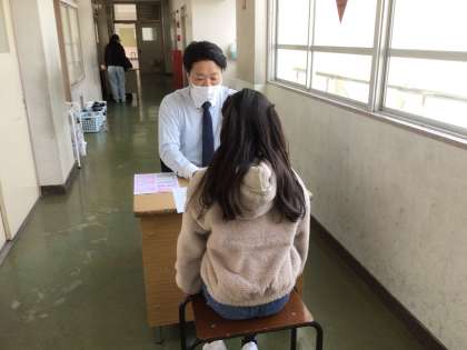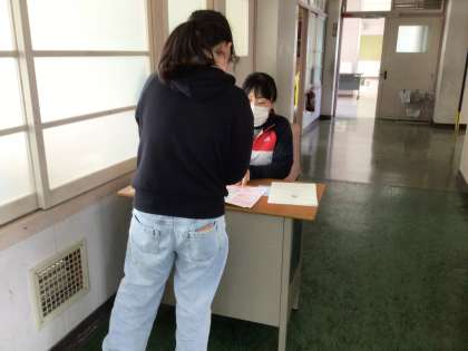 担任の先生が、励ましの声をかけてくれながら、通知表を渡してくれました。
