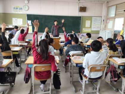 4月10日 家庭科 5年生 公開日 2025/04/10 更新日 2025/04/10 校長室から 初めての家庭科の授業です。 先生「どんなことが楽しみですか?」 こども「料理すること」 こども「ミシンを使ってエプロンを作ること」 みんな新しい教科にわくわくしています。