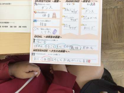 4月11日 学級活動 6年生 公開日 2025/04/14 更新日 2025/04/14 校長室から 自己紹介カードに、先日撮った写真を貼ります。 6年生としての自覚がどの子のカードからも垣間見られました。