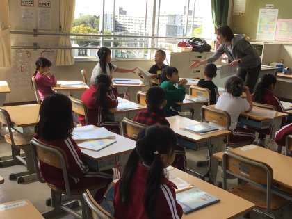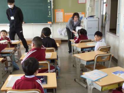 4月14日 学級活動 1年生 公開日 2025/04/14 更新日 2025/04/14 校長室から 先生「今からプリントを配ります。6枚あります。どうぞ、ありがとうで回してね」 こども「どうぞ」 こども「ありがとう」 相手の目を見て、「ありがとう」を言っていました。