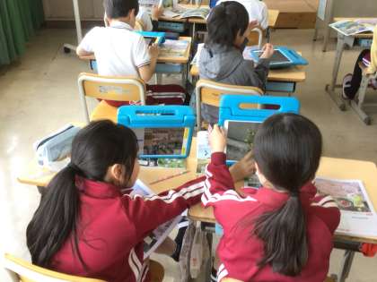 外へ出て、虫や植物を見つけて学習用タブレットで撮影してきました。