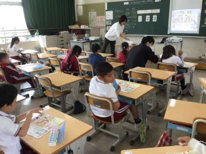 いろいろなものの数をかぞえよう 数図ブロックを絵の上に置いて数えました。