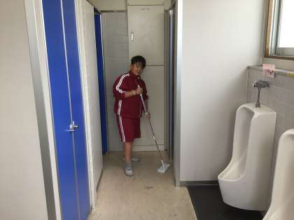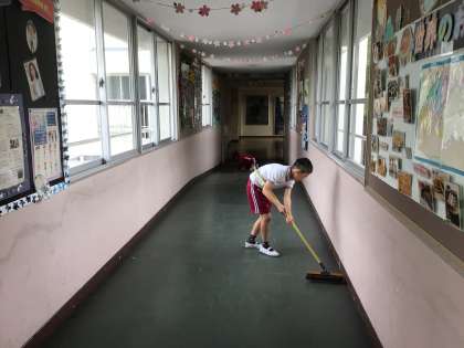 おしゃべりしないで、静かに掃除に取り組んでいる子どもたち。 一生懸命はかっこいい。